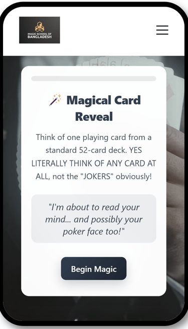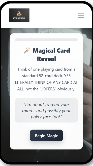 "MagIC SCHOOL OF BANGLADESH" is dedicated to teaching the art of magic for entertainment, education, and personal development. Our programs are designed for aspiring magicians of all levels, from beginners to professionals. While we provide expert training in various magic disciplines, mastery requires practice, dedication, and ethical performance. Our lessons are for entertainment and educational purposes only and should never be used for deception, fraud, or unethical activities.